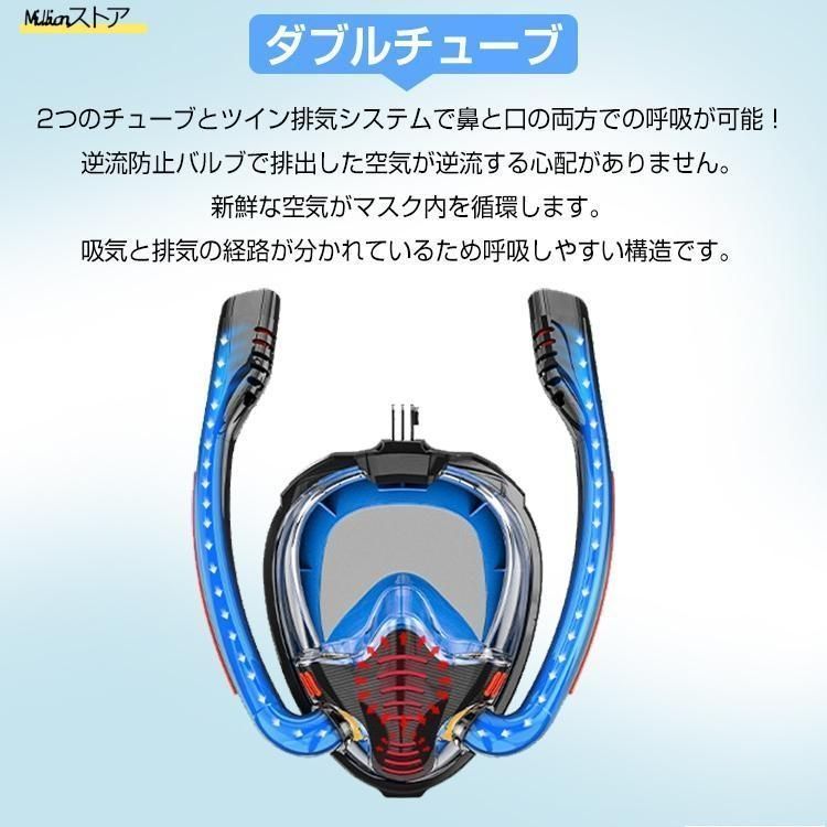 水中メガネ 海水浴 ダイビング マスク シュノーケル フルフェイス型 ダブル 呼吸管 180度視野 曇り止め GoPro対応 シリコン 大人用 子供用 男女兼用