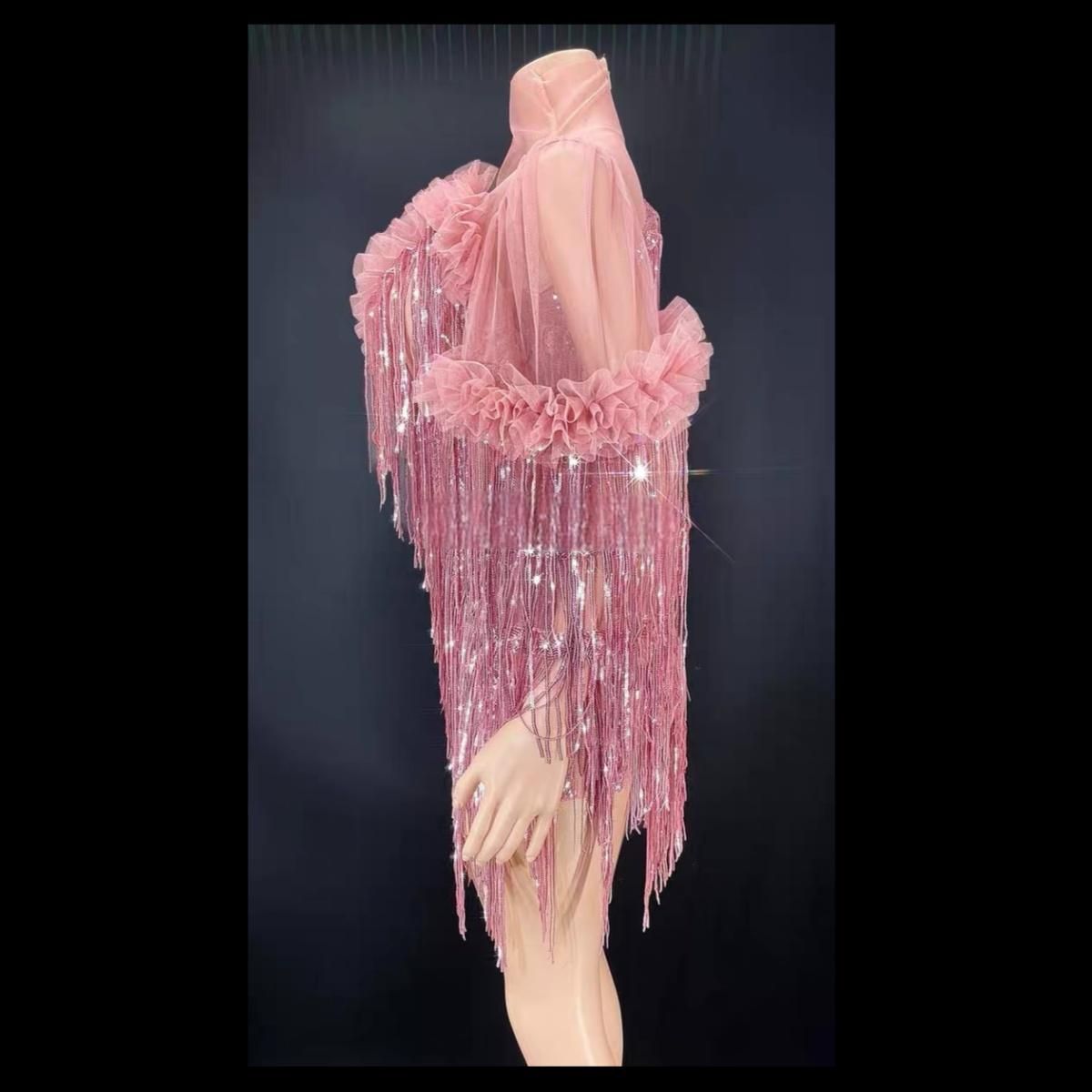 社交ダンスドレス ベリーダンス衣装 キラキラ ラメ フリンジ セクシー ミニドレス ナイトクラブ 誕生日パーティー 用 ピンク