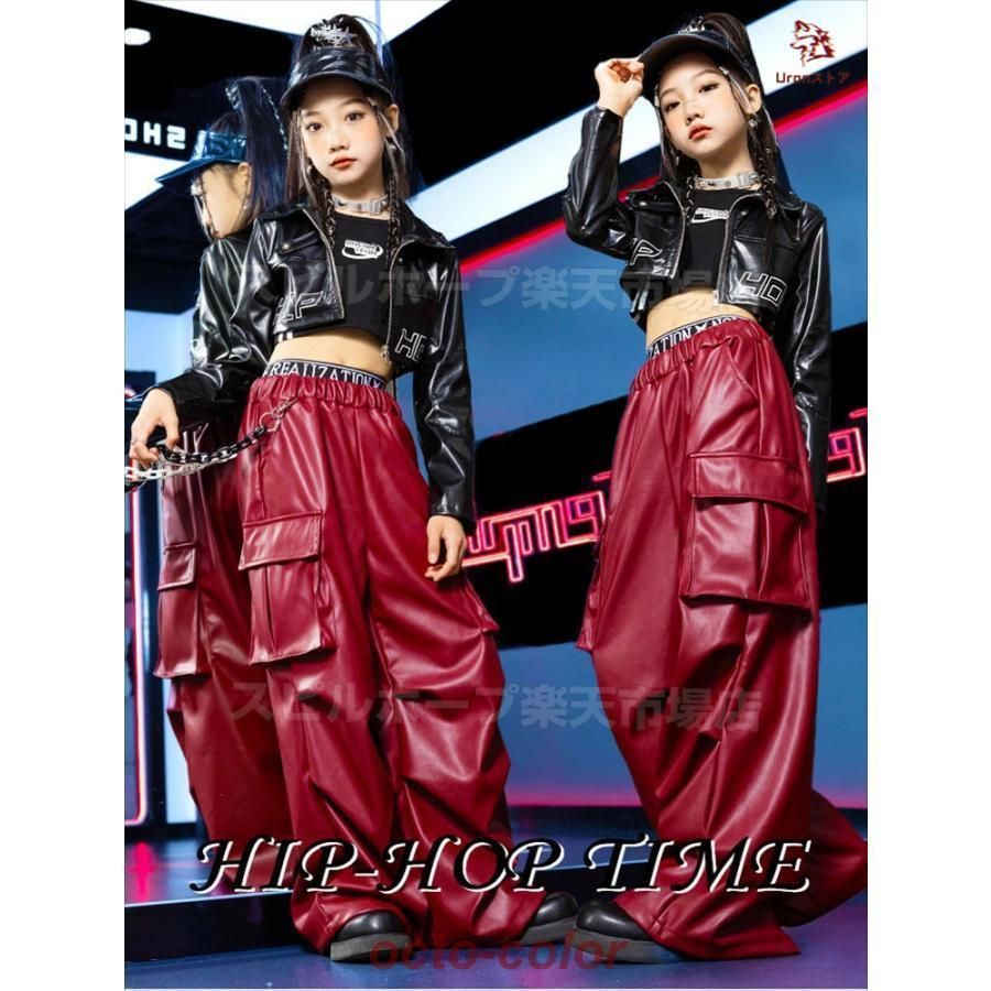 黒 レザージャケット 赤 カーゴパンツ レザーパンツ キッズ ダンス衣装 セットアップ 上下セット 韓国 jazz おしゃれ 女の子 子供 かっこいい かわいい 長袖 ト2.23LY779売り切れ間近